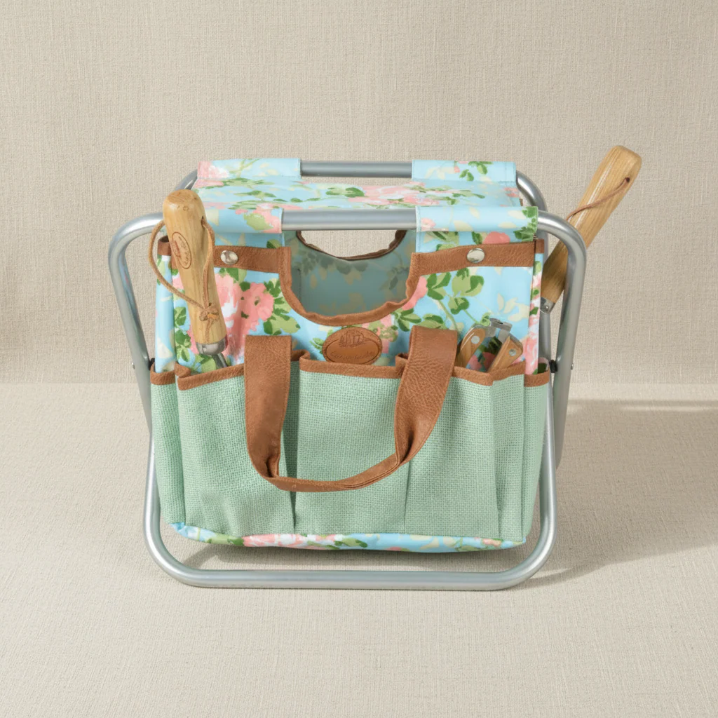 Floral Print 2-in-1 Tool/Plant Bag & Stool